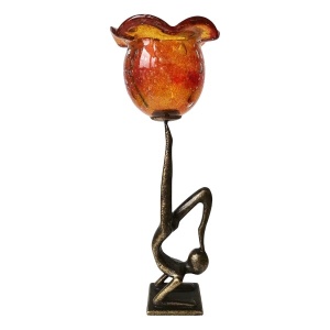 Κηροπήγιο μπρούτζινο γυναίκα με πόδι ψηλά με φυσητό γυαλί