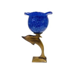 Κηροπήγιο μπρούτζινο δελφίνι με φυσητό γυαλί