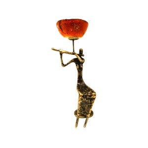 Κηροπήγιο μπρούτζινο φλαουτίστρια με γυαλί