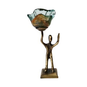Κηροπήγιο μπρούτζινο παιδάκι με φυσητό γυαλί