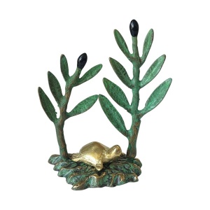 Κλαδιά ελιάς μικρά μπρούτζινα με χελώνα, χειροποίητο προϊόν ελληνικής κατασκευής. Η ελιά είναι το δέντρο του καλού, ταυτισμένο με την αναγέννηση και το φως. Σύμβολο της γαλήνης, της γονιμότητας, της προστασίας. Αποτελεί το σύμβολο της ειρήνης, της σοφίας, της νίκης, της αθανασίας και της ευφορίας. Διακοσμητικό επιτραπέζιο για να ομορφύνετε κάθε χώρο, δίνοντας έμφαση στις λεπτομέρειες που θα προσθέσουν μία ιδιαίτερη πινελιά. Αποτελεί ιδανική πρόταση για δώρο.