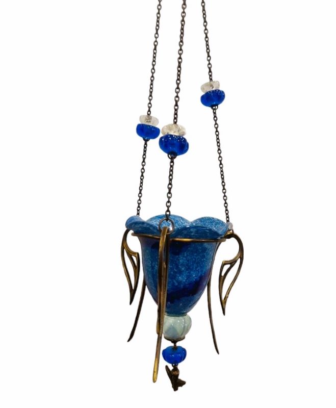Καντήλι φυσητό γυαλί κρεμαστό μεγάλο τρίποδας