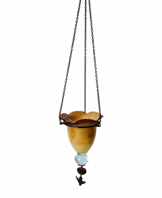 Καντήλι φυσητό γυαλί κρεμαστό με φύλλο