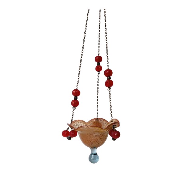 Καντήλι φυσητό γυαλί κρεμαστό πλατύγυρος μικρός με μπίλια