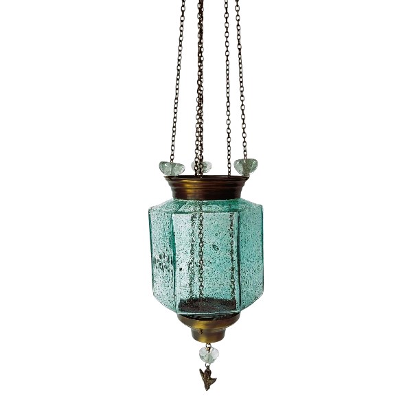 Καντήλι φυσητό γυαλί κρεμαστό με φύλλο