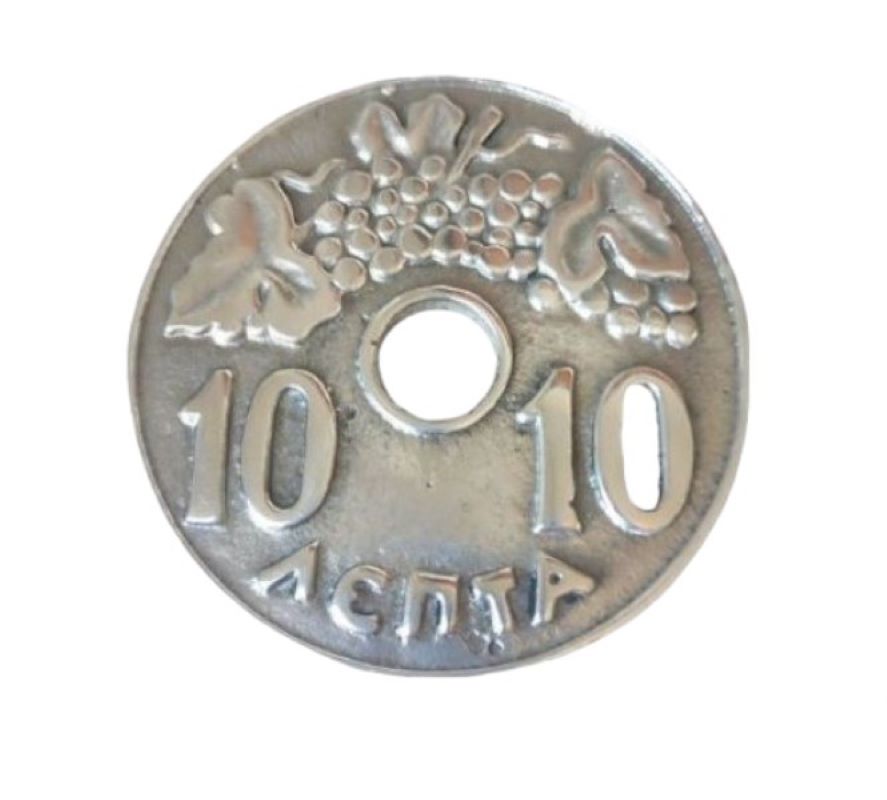 Χειροποίητο κέρμα δεκάρα από αλουμίνιο ελληνικής κατασκευής. Διακοσμητικό επιτραπέζιο για να ομορφύνετε κάθε χώρο, δίνοντας έμφαση στις λεπτομέρειες που θα προσθέσουν μία ιδιαίτερη πινελιά.