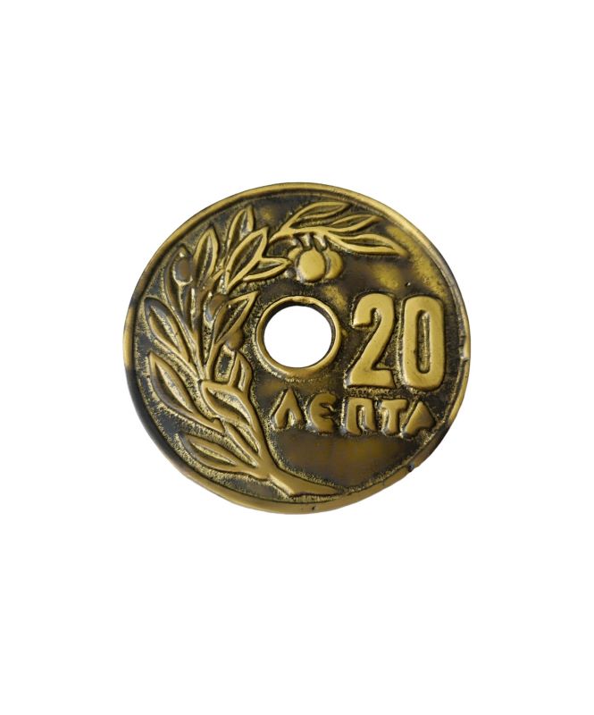 Κέρμα εικοσάρα μπρούτζινο, χειροποίητο ελληνικής κατασκευής. Διακοσμητικό επιτραπέζιο για να ομορφύνετε κάθε χώρο, δίνοντας έμφαση στις λεπτομέρειες που θα προσθέσουν μία ιδιαίτερη πινελιά. Ένα διαχρονικό κομμάτι για να διακοσμήσετε το σπίτι και τον χώρο σας. Αποτελεί ιδανική πρόταση για δώρο.