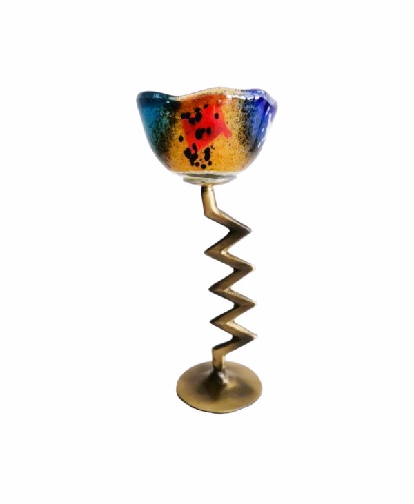 Κηροπήγιο μπρούτζινο ζικ ζακ με γυαλί