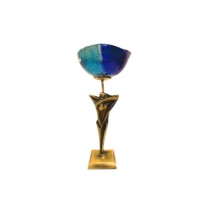 Κηροπήγιο χειροποίητο μπρούτζινο ελληνικής κατασκευής με χειροποίητο χυτό γυαλί για να τοποθετήσετε ρεσώ. Διακοσμητικό επιτραπέζιο για να ομορφύνετε κάθε χώρο, δίνοντας έμφαση στις λεπτομέρειες που θα προσθέσουν μία ιδιαίτερη πινελιά.