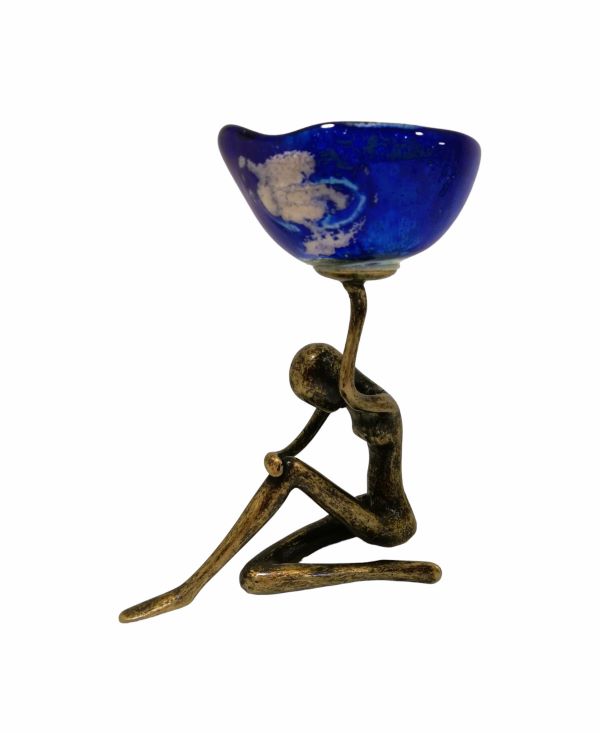 Κηροπήγιο μπρούτζινο γυναίκα σκυφτή με γυαλί