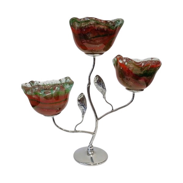 Κηροπήγιο μπρούτζινο νίκελ με φυσητό γυαλί