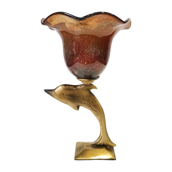 Κηροπήγιο μπρούτζινο δελφίνι με φυσητό γυαλί