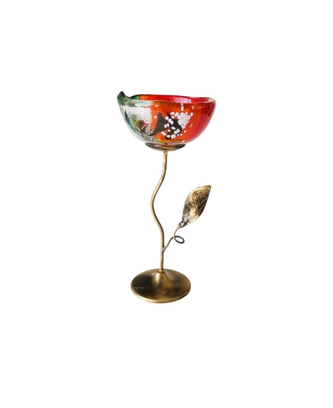 Κηροπήγιο μπρούτζινο κλαδάκι με φύλλο με γυαλί