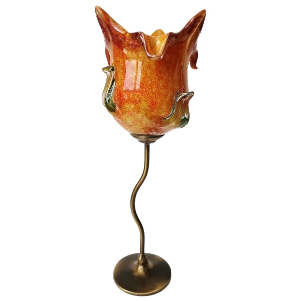 Κηροπήγιο μπρούτζινο με φυσητό γυαλί