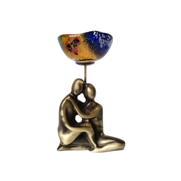 Κηροπήγιο μπρούτζινο ζευγάρι αγκαλιαστό με γυαλί
