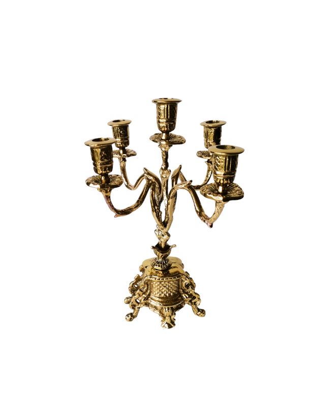 Κηροπήγιο μπρούτζινο πεντάκερο χρυσό