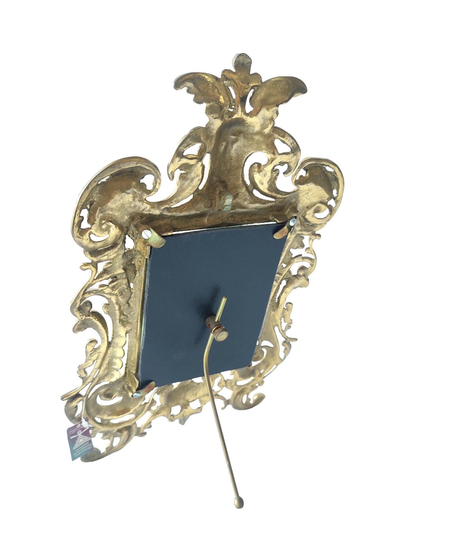 Χειροποίητη μπρούτζινη, επιτραπέζια κορνίζα ελληνικής κατασκευής. Κατάλληλη για φωτογραφίες διαστάσεων 12×17εκ.