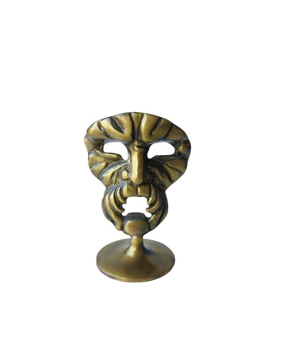 Χειροποίητη μάσκα επιτραπέζια μπρούτζινη ελληνικής κατασκευής. Διακοσμητικό επιτραπέζιο για να ομορφύνετε κάθε χώρο, δίνοντας έμφαση στις λεπτομέρειες που θα προσθέσουν μία ιδιαίτερη πινελιά. Αποτελεί ιδανική πρόταση για δώρο.