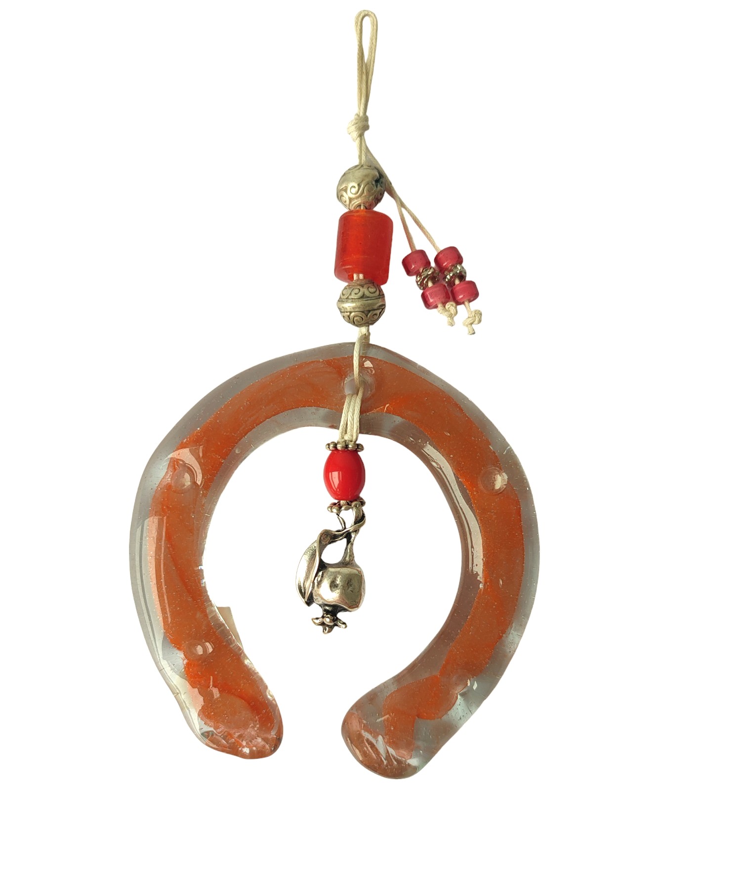 Χειροποίητο μικρό πέταλο κρεμαστό με στόλισμα από φυσητό γυαλί, ελληνικής κατασκευής, πορτοκαλί χρώμα. Ένα διαχρονικό κομμάτι για να διακοσμήσετε το σπίτι και τον χώρο σας. Ο συμβολισμός του πετάλου είναι η δύναμη, η ευτυχία και η προφύλαξη από το κακό μάτι. Συνήθως το κρεμάμε στην κεντρική πόρτα του σπιτιού με το άνοιγμα προς τα πάνω.