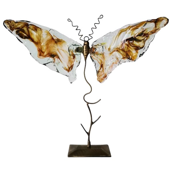 Πεταλούδα μπρούτζινη με φυσητό γυαλί