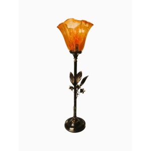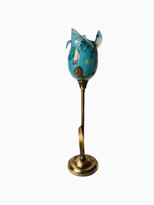 Πορτατίφ με μπρούτζινη βάση και γυαλί φυσητό, χειροποίητο ελληνικής κατασκευής. Φωτιστικό επιτραπέζιο για να ομορφύνετε κάθε χώρο, δίνοντας έμφαση στις λεπτομέρειες που θα προσθέσουν μία ιδιαίτερη πινελιά. Ένα κομμάτι που ταιριάζει με τα περισσότερα στυλ διακόσμησης και αποτελεί ιδανική πρόταση για δώρο.
