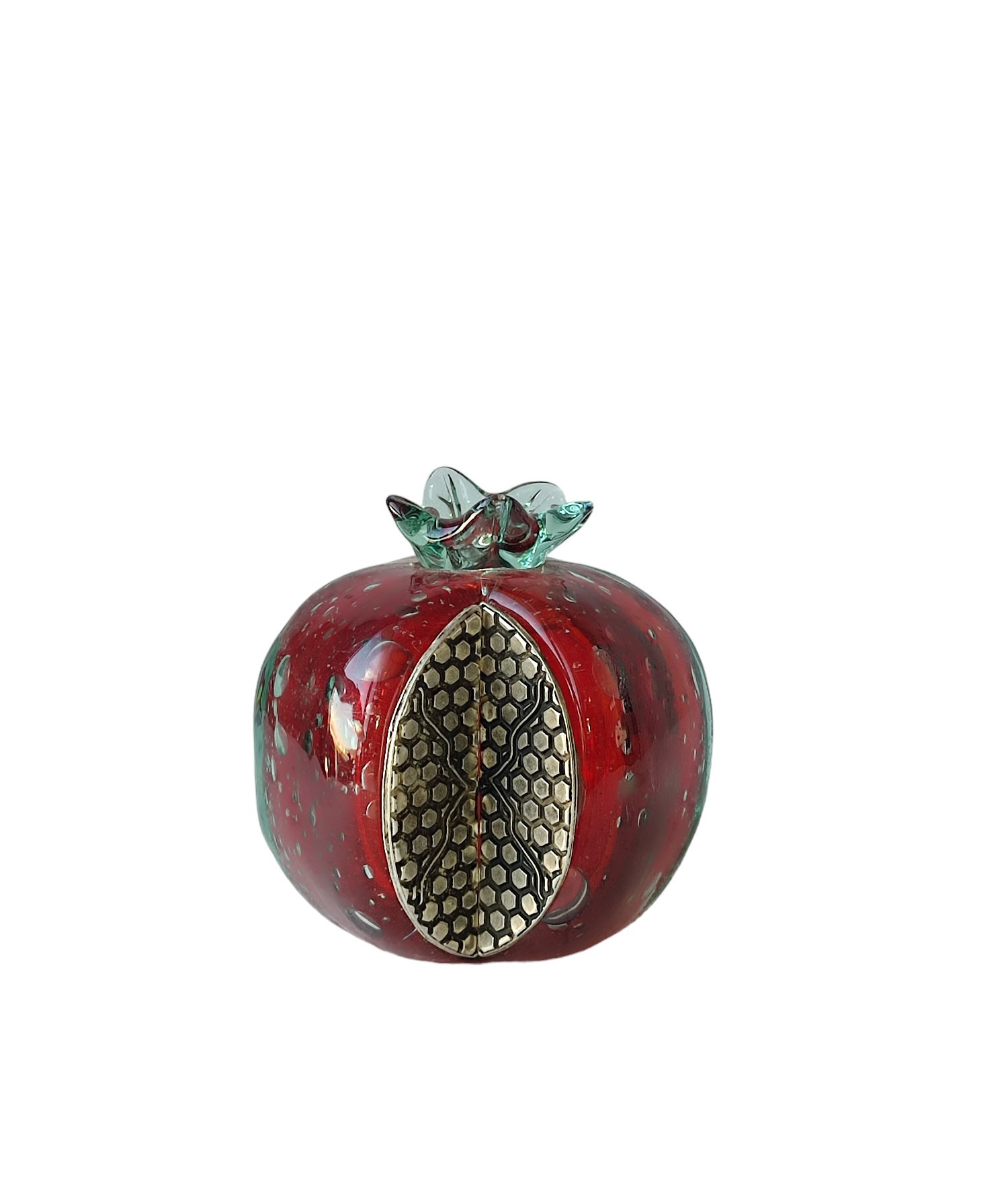 Χειροποίητο ρόδι από φυσητό γυαλί ελληνικής κατασκευής. Ένα διαχρονικό κομμάτι για να διακοσμήσετε το σπίτι και τον χώρο σας. Αποτελεί ιδανική πρόταση για γούρι. Μπορείτε επίσης να το προσφέρετε ως δώρο σε μια επίσκεψή σας, σε αγαπημένα σας πρόσωπα ή σε συναδέλφους ή γνωστούς. Ο συμβολισμός του ροδιού είναι ο πιο γνωστός στους περισσότερους από εμάς. Είναι σύμβολο γονιμότητας, αφθονίας και καλοτυχίας, γι’ αυτό άλλωστε και την Πρωτοχρονιά σπάμε ρόδια.