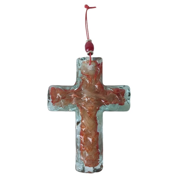 Χειροποίητος σταυρός κρεμαστός από φυσητό γυαλί, ελληνικής κατασκευής. Ένα διαχρονικό κομμάτι για να διακοσμήσετε το σπίτι και τον χώρο σας. Ταιριάζει με τα περισσότερα στυλ διακόσμησης και αποτελεί ιδανική πρόταση για δώρο.