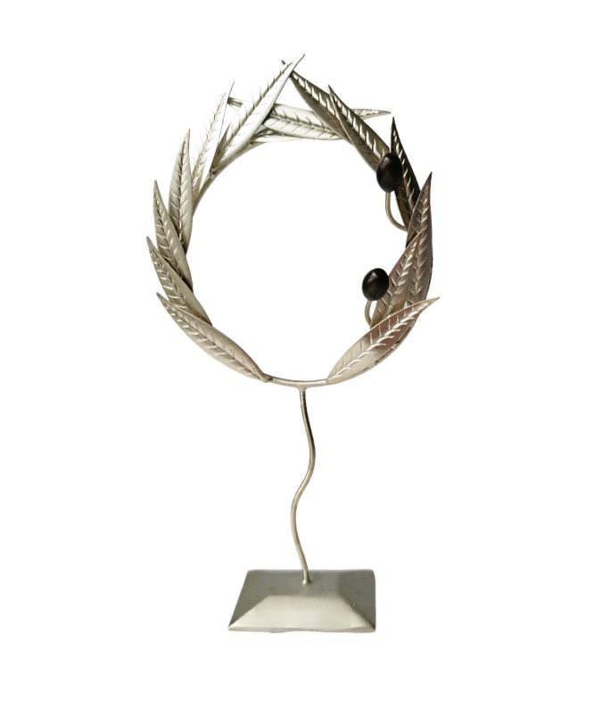 Στεφάνι ελιάς μικρό μπρούτζινο νίκελ, χειροποίητο ελληνικής κατασκευής. Διακοσμητικό επιτραπέζιο για να ομορφύνετε κάθε χώρο, δίνοντας έμφαση στις λεπτομέρειες που θα προσθέσουν μία ιδιαίτερη πινελιά. Ένα διαχρονικό κομμάτι για να διακοσμήσετε το σπίτι και τον χώρο σας. Αποτελεί ιδανική πρόταση για δώρο.